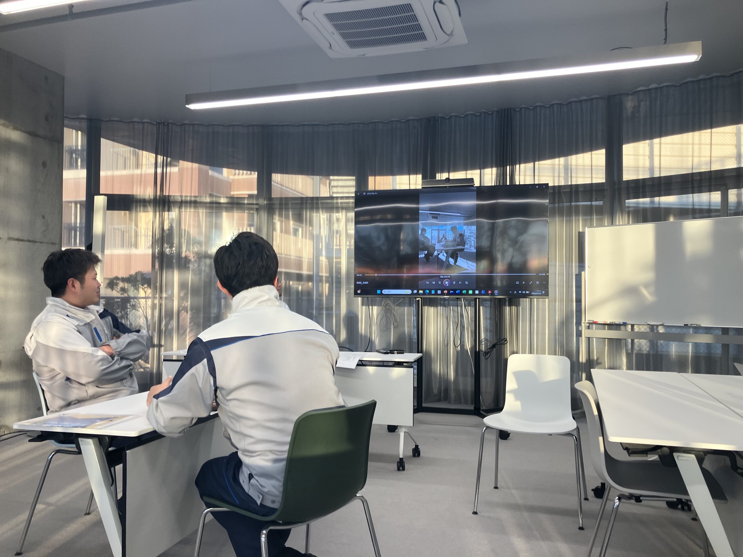その動画を振り返りながら改善点などを話し合っている場面です。